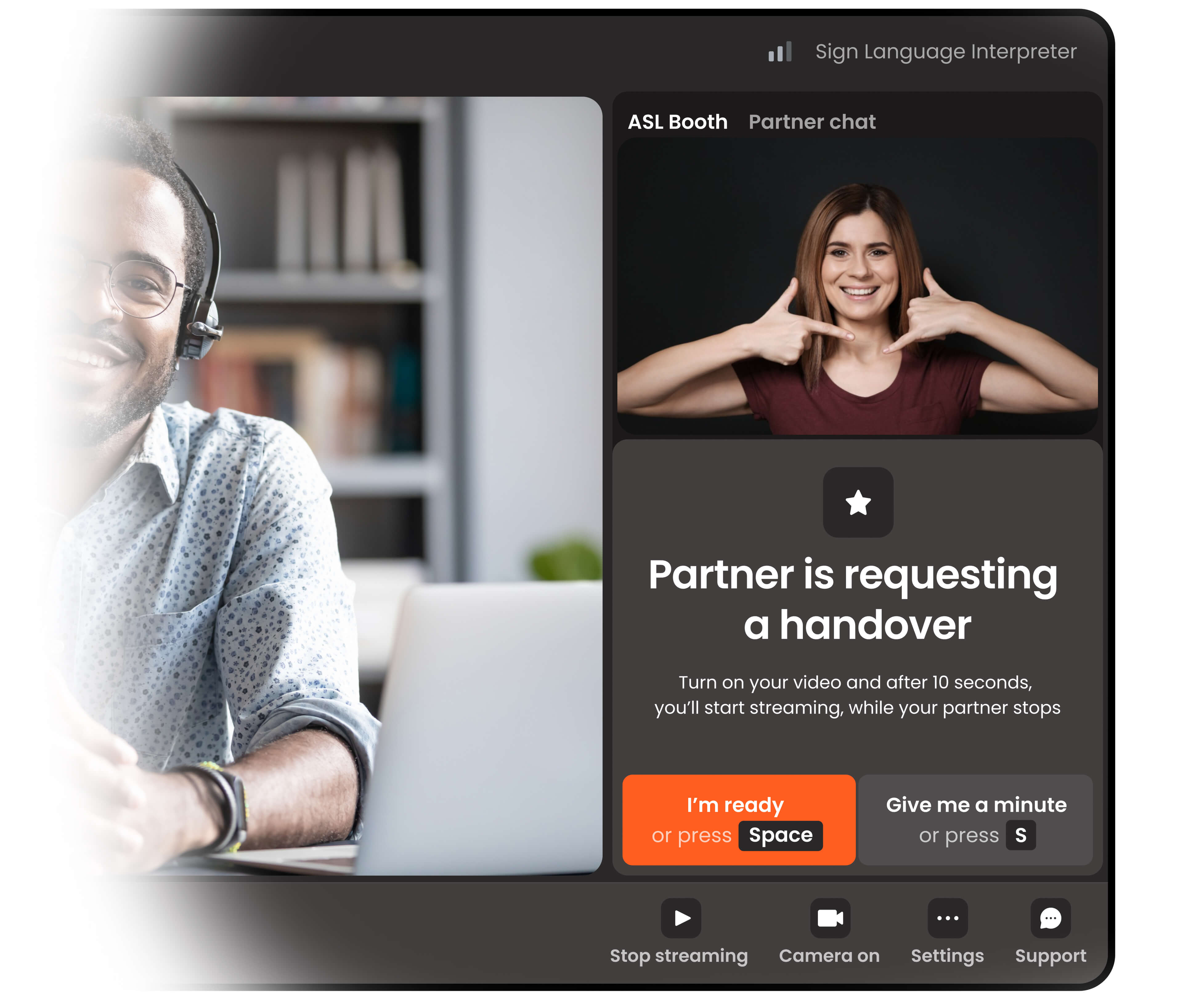 A part of their is remote sign language interpretation. Being remote reduces costs for both clients and the company, but also adds risk — interpreters have to switch every 25-30 minutes and everything has to flow smoothly with no interruptions.