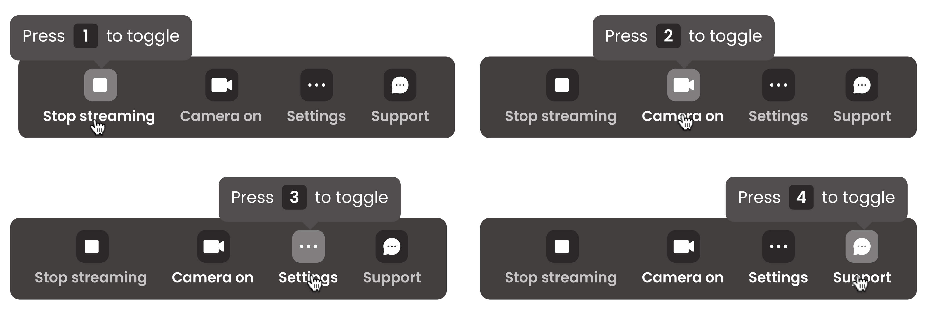 We realised that almost every scenario they ended up in only required one action from them. So to help with that we made one big button. And added a spacebar hotkey (another big button) that never changes regarding of the action.